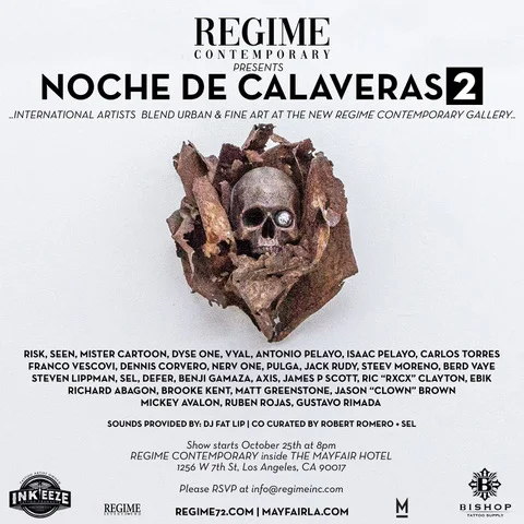 On October 25th, in celebration of the grand opening of the Regime Contemporary, we are throwing an extensive exhibition called NOCHE DE CALAVERAS 2, including over 30 artists.