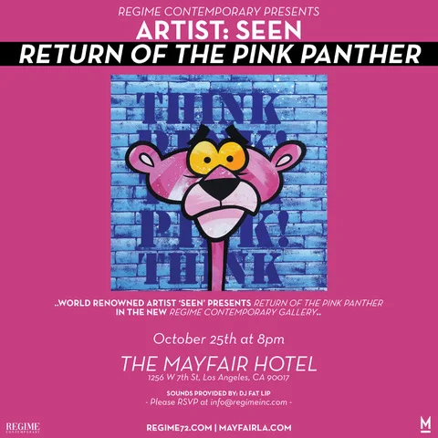 On October 25th, to celebrate the grand opening of the Regime Contemporary, legendary artist SEEN presents his “RETURN OF THE PINK PANTHER” exhibit.